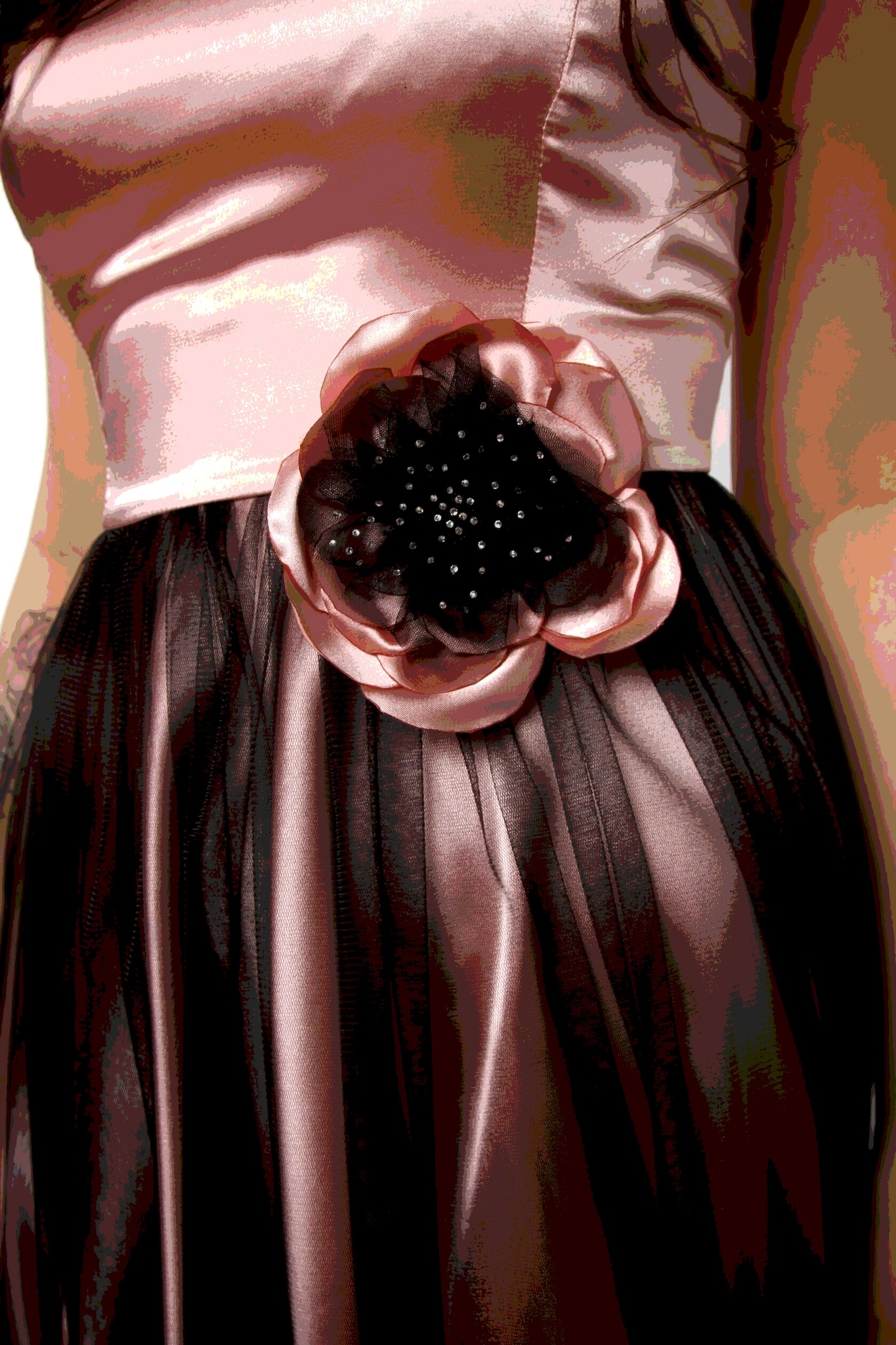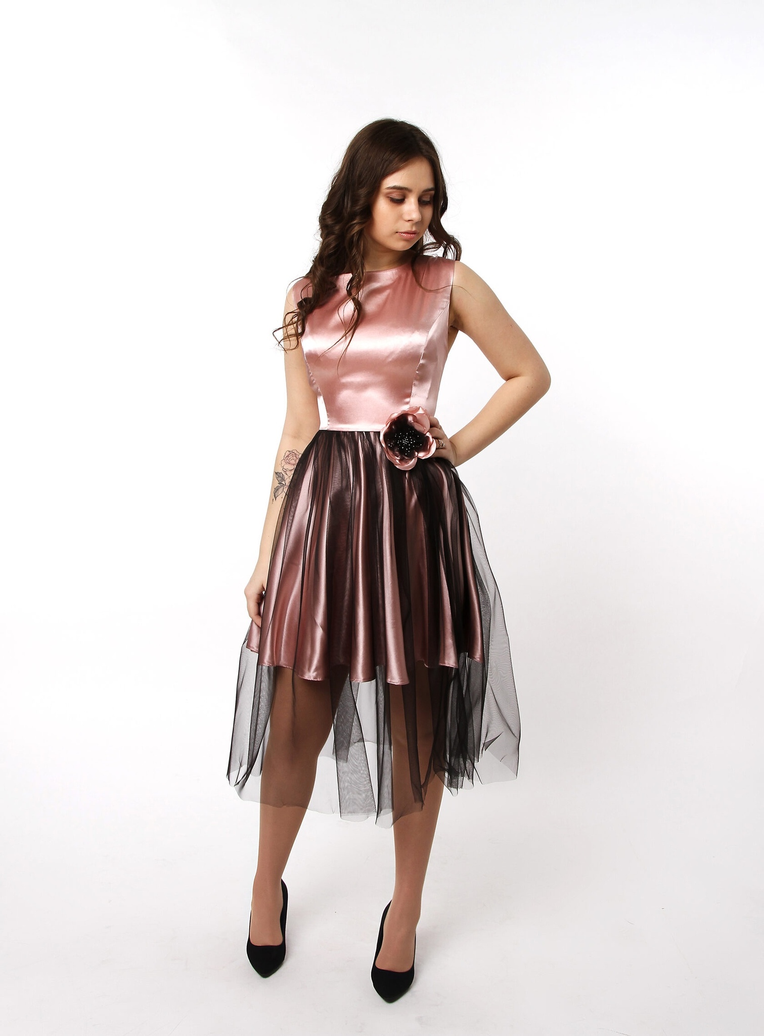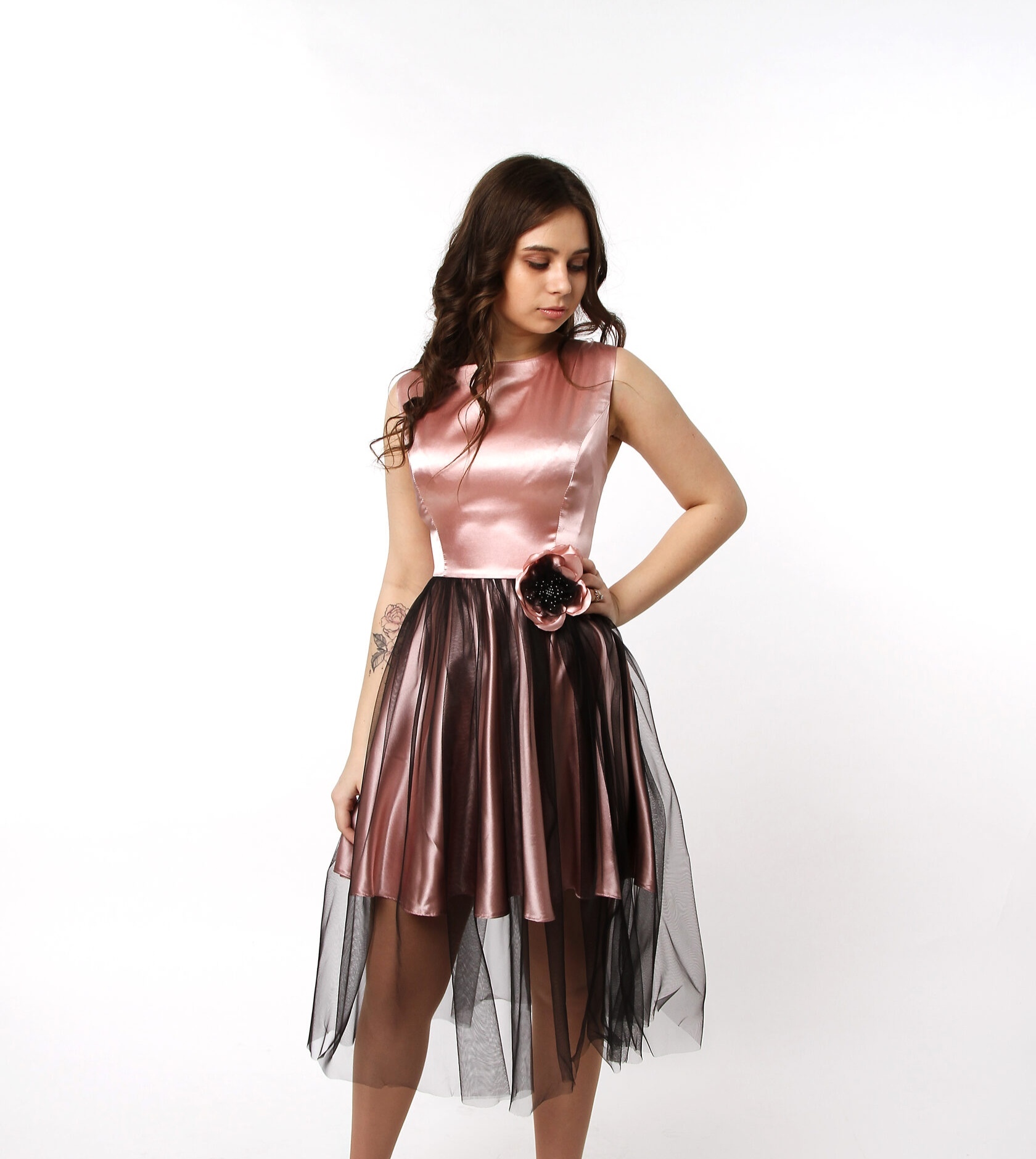 Потрясающе красивое вечернее платье. Сочетание нежного атласа цвета темной пудры с черным мягким фатином сделает образ невероятно легким и красивым.