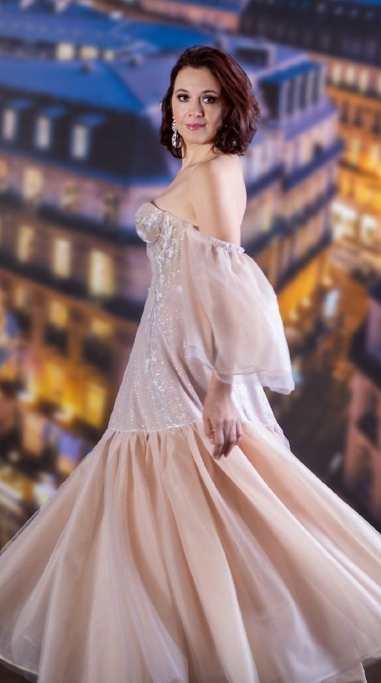 Роскошное свадебное платье с трендовыми спущенными рукавами-фонариками.